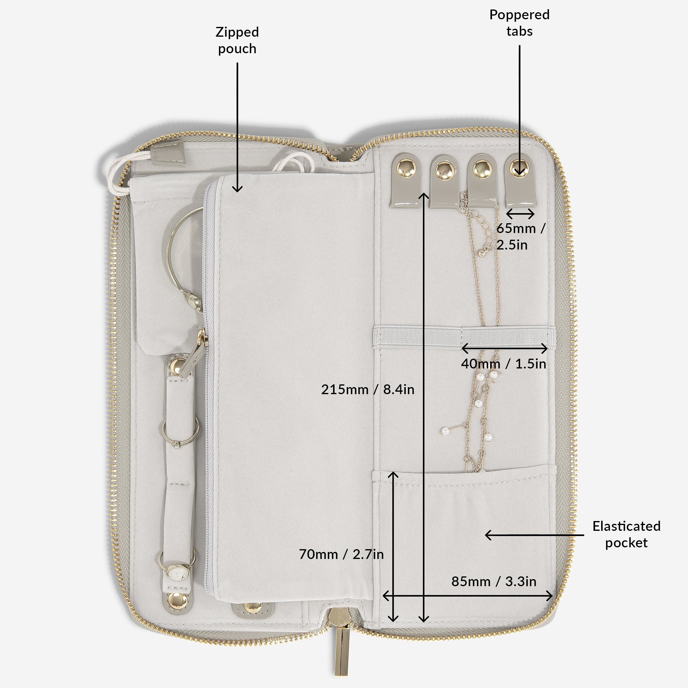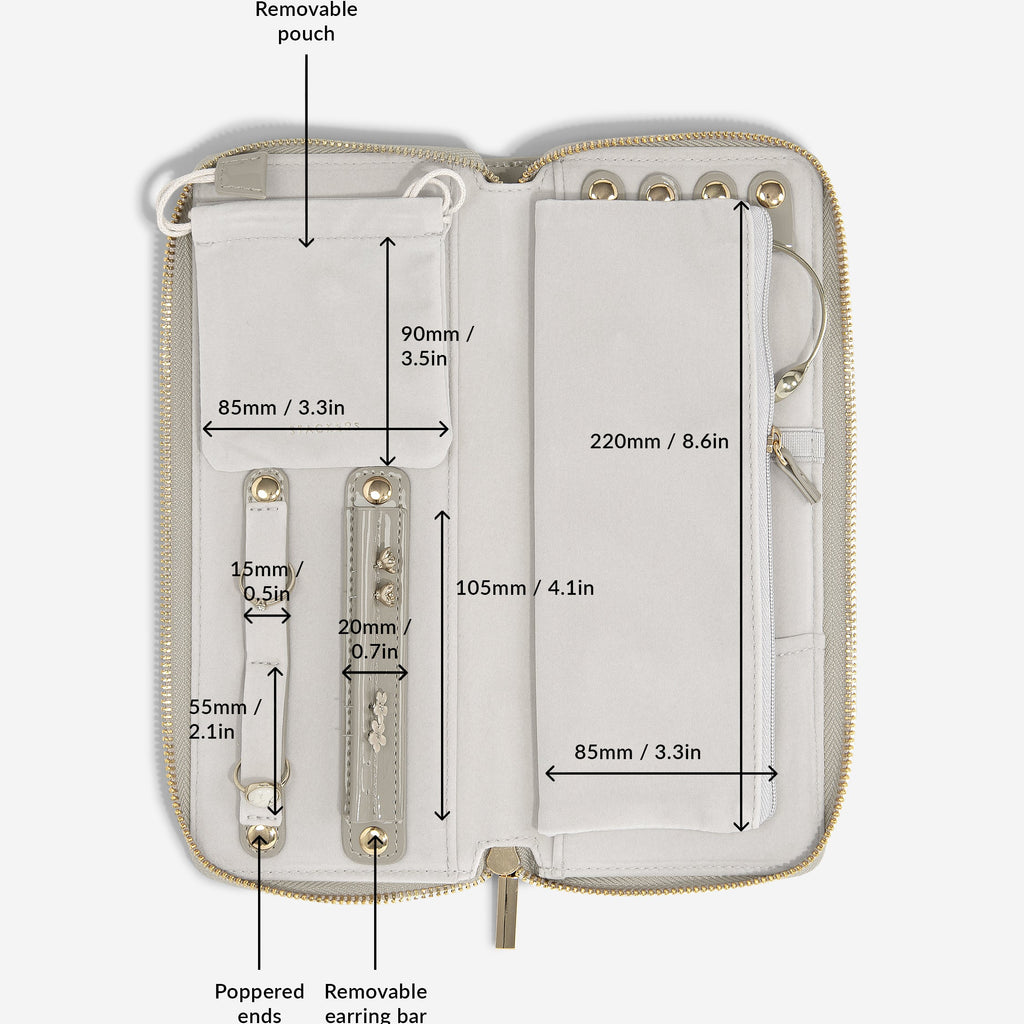 このコンパクトなジッパー付きジュエリーケースは、お気に入りのジュエリーをたくさん収納できる上に、ハンドバッグや荷物の中に簡単に入ります。